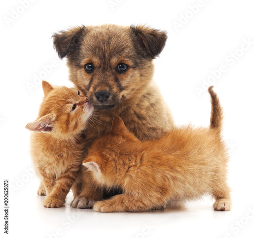 Obraz premium Puppy and two kittens.