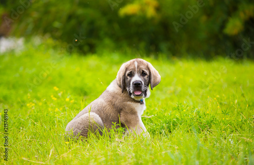 Obraz premium Puppy breed of Spanish mastiff playing in the grass