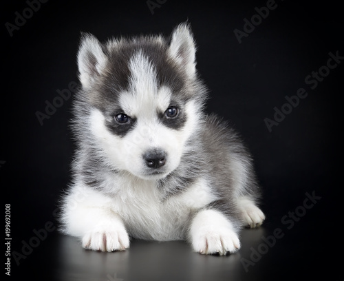 Fototapeta premium Puppy Siberian husky on a black background