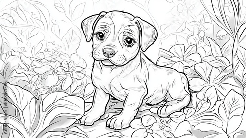 Fototapeta premium Puppy-themed coloring pages designed for kids and adults; a fun and relaxing...
