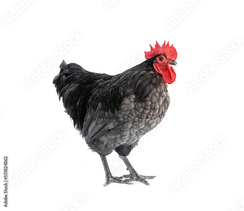 © Panupong, Fototapeta premium Pure breed of beautiful chicken. Blue Australorp rooster isolated on white background.