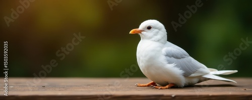 Obraz premium Pure white bird rests on rustic brown wooden table , wild, vintage, background