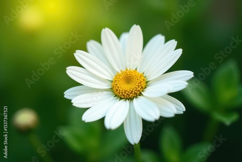 Obraz premium Pure white daisy, heart-shaped petals, delicate bloom, white flower, macro,...