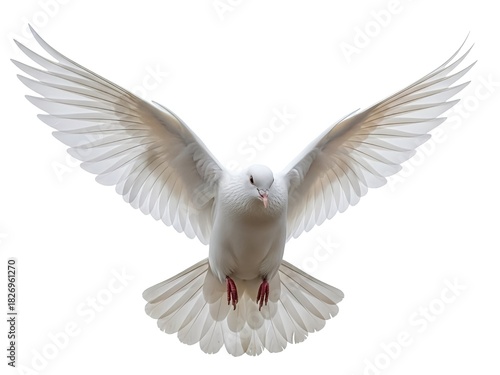 © Malik, Obraz premium Pure white dove flying forward with wide open wings of peace