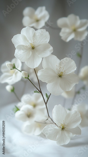 © 자인 김, Fototapeta premium pure white flower branch close-up on white