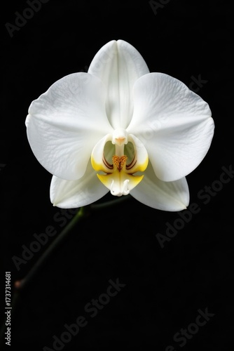 Naklejka premium Pure white orchid, pristine petals against deep black , symbol, phalaenopsis