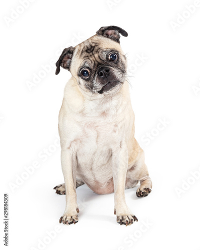 © adogslifephoto, Obraz premium Purebred Pug Dog Sitting Facing Forward