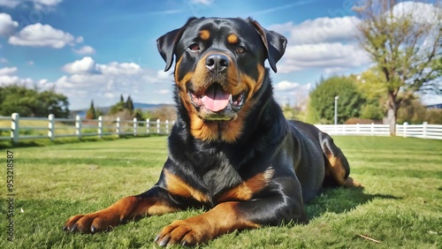 © Shahriar507, Fototapeta premium Purebred Rottweiler on Green Grass