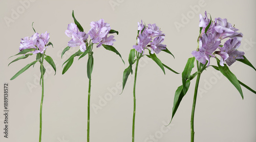 © Rytis, Fototapeta premium Purple alstroemeria flowers with green stems blooming on a minimal light background