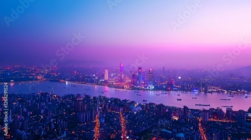 © artzone, Fototapeta premium Purple and Blue City Skyline at Twilight