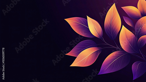 © fanjianhua, Fototapeta premium Purple and gold leaves, black background