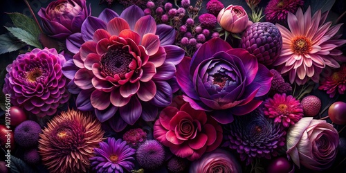 Naklejka premium Purple and Pink Flower Bouquet, Floral Arrangement, Still Life Photography,...