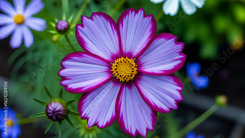 © Jui, Obraz premium Purple and white cosmos flower with yellow center image