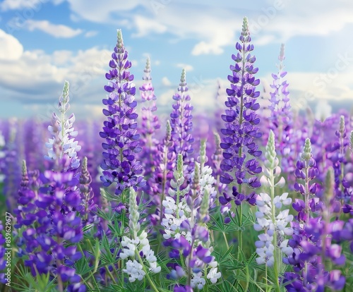 © BrandwayArt, Naklejka premium Purple and White Lupine Field
