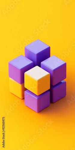 Fototapeta premium Purple and Yellow 3D Cubes Abstract Minimalist Background