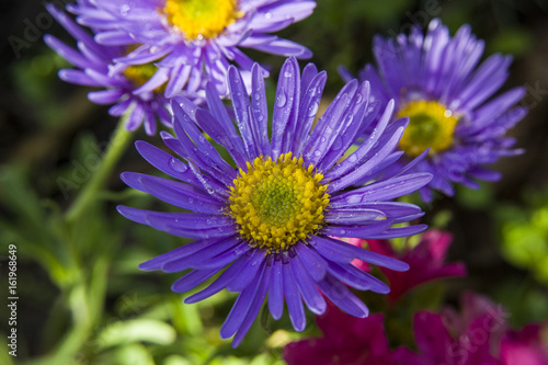 Obraz premium Purple asters and water droplets