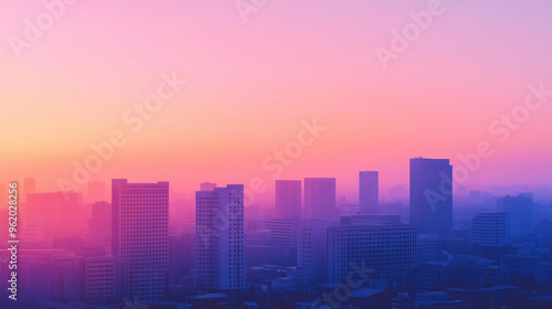 © Alex, Fototapeta premium Purple background landscape city garidient sunset
