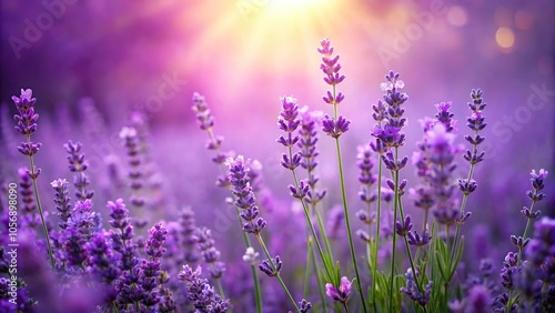 Naklejka premium Purple background with a blooming garden of lavender flowers in full bloom, botanical, landscape