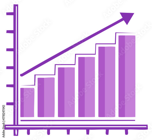 Fototapeta premium Purple bar graph with upward trending arrow representing business growth and...