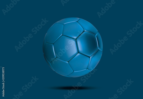 Obraz premium Purple blue soccer ball on blue background. Realistic 3d Blue football ball. Blue football ball