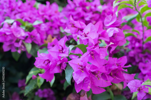 Fototapeta premium purple bougainvillea flower in garden, selective focus