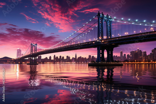 Fototapeta premium purple bridge spanning over a river with boat