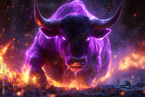 Fototapeta premium purple Bull with fiery effect