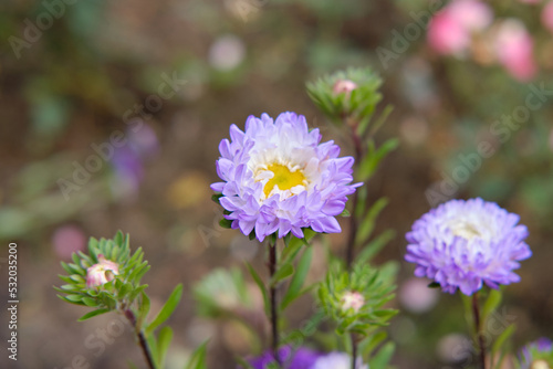 © grek881, Obraz premium Purple chrysanthemums close-up, side view