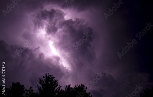 © Daniel, Fototapeta premium purple clouds with lightning strike against cloudy night sky