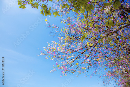 Fototapeta premium Purple crape myrtle blossoms at blue sky.