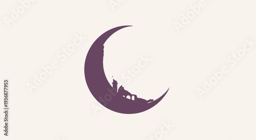 © Fiiqu, Fototapeta premium Purple Crescent Moon Silhouette on White Background