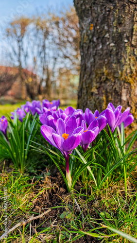 © Yoana, Obraz premium Purple Crocus Flower Close-Up – Spring Bloom Background