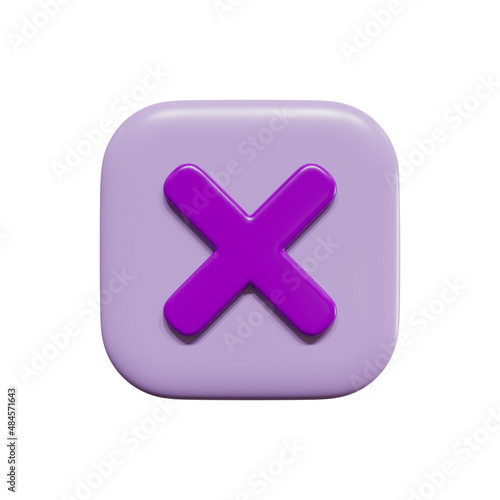© tuiafalken, Obraz premium Purple cross mark symbol icon isolated white background, checkmark button and mobile app icon, 3D rendering.