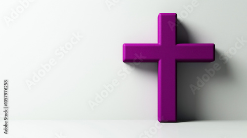 © primopiano, Obraz premium Purple cross standing against a plain white background with strong shadows creating a minimalist and modern design.