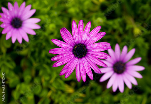 © janaph, Obraz premium Purple daisy flowers, rain drops