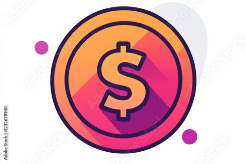 © Andrii Savchuk, Obraz premium Purple dollar coin with colorful dotted accents