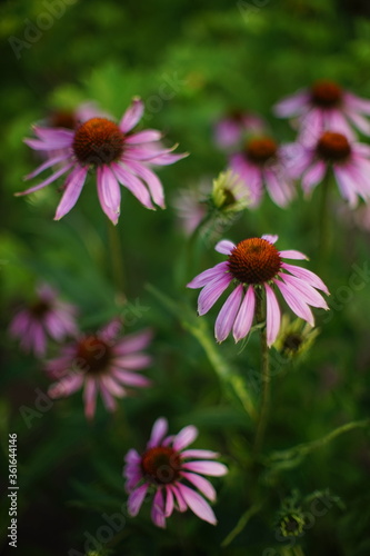 © Omega, Obraz premium Purple echinacea flowers grows in the garden, closeup buds, side