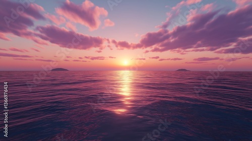 © Tharushi, Naklejka premium Purple Evening Sky with Serene Sunset Over the Ocean, Reflecting Warm Colors on the Water