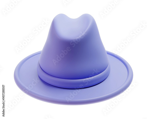 Fototapeta premium Purple fedora hat with smooth rounded crown in minimalist design, cut out -...