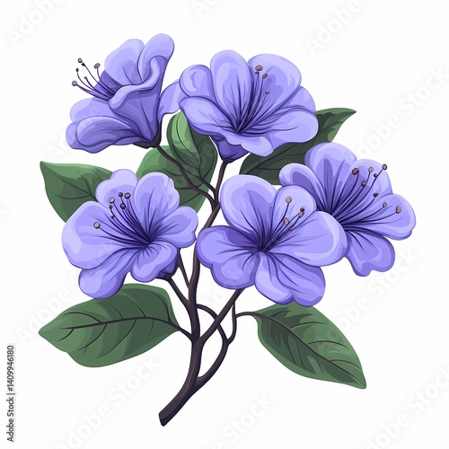 © niroshan, Fototapeta premium Purple Floral Illustration. Abstract Botanical Artwork with Blooming Petals and Leafy Branches - Vibrant Spring Design For Nature Lovers