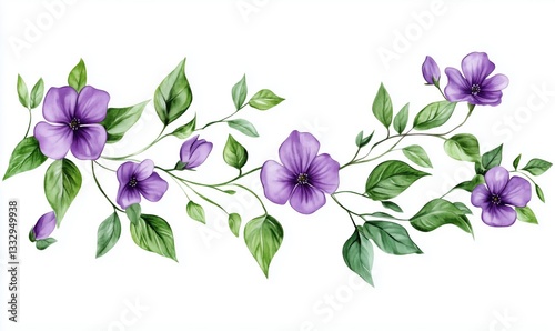 © Vergiliy, Fototapeta premium Purple floral watercolor illustration with leaves and blossoms for design projects
