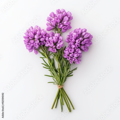 © Kin no Hikari, Fototapeta premium Purple flower bouquet with green stems, white isolated background.