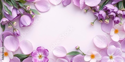 Fototapeta premium Purple flower petals and leaves in a soft and delicate arrangement, perfect for botanical backgrounds or nature-inspired designs, petals, backgrounds, arrangement