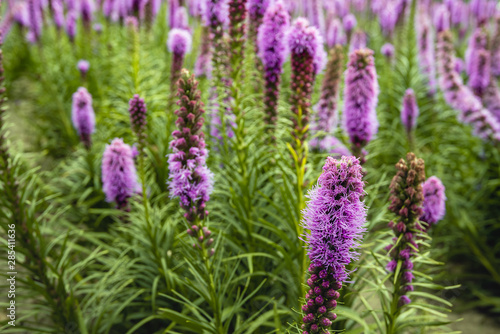Naklejka premium Purple flowering Liatris spicata plants from close