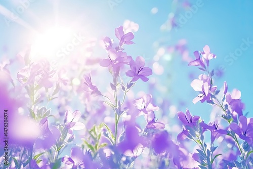 © multasam, Fototapeta premium Purple flowers bathed in sunlight