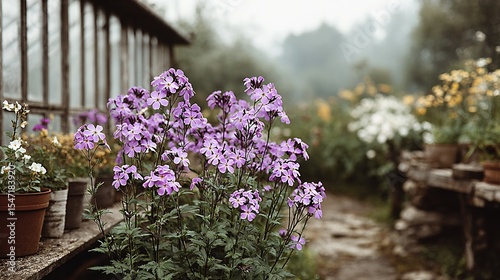 © aishale, Obraz premium Purple flowers bloom in a garden setting.