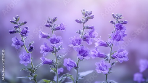 Naklejka premium Purple flowers blooming in a garden at sunset with soft background