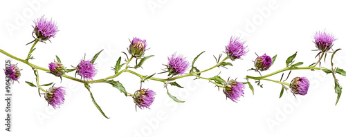 Fototapeta premium Purple flowers milk thistle isolated on white background