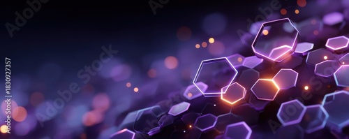 © Georgii, Fototapeta premium Purple futuristic background with glowing hexagons and digital lights for technology and science themes