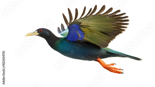 Fototapeta premium Purple Gallinule Bird Flying White Background, Photo Realistic, Pattern...